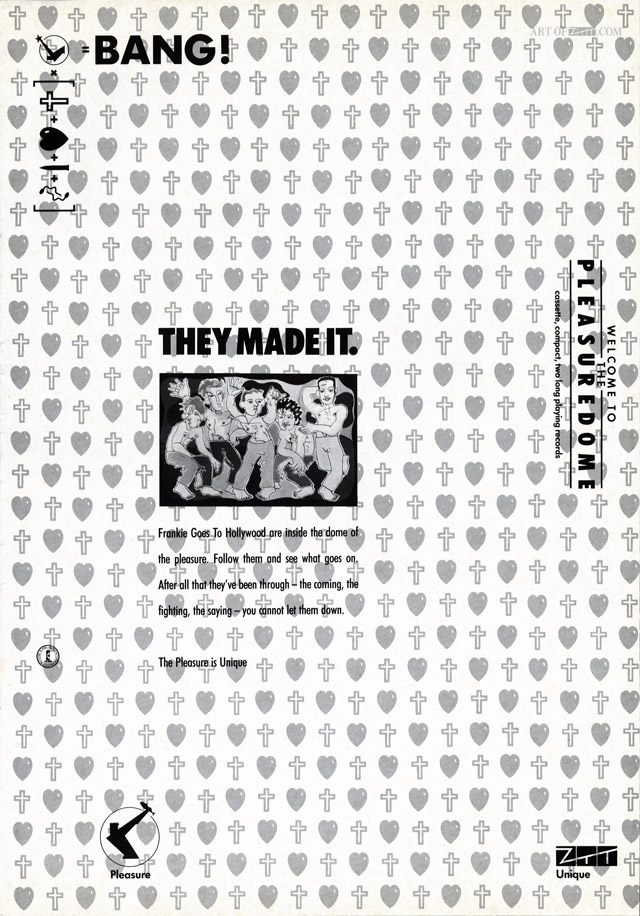 artist: Frankie Goes To Hollywood title: Welcome To The Pleasuredome format: 1 pg The Beat advert design: XLZTT Illustration: Lo Cole cat. no: ZTT IQ 1 date: 11.84 art of notes: