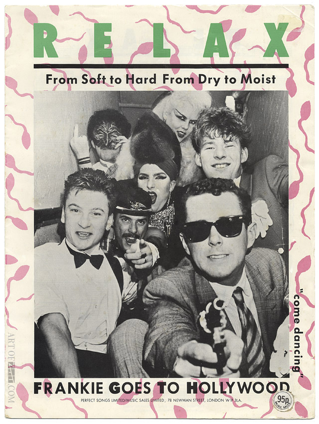 artist: Frankie Goes To Hollywood title: Relax format: sheet music design: XLZTT photography: Steve Rumney illustration: n/a cat. no: n/a date: ?/?/84 art of notes: Eight sides with front and back covers based on the ‘Relax’ singlette design and music notation inside.